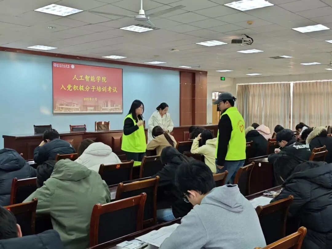 为深化入党积极分子的理论素养,检验入党积极分子思想政治素质,人工智能学院党支部于11月28日下午在人工智能学院开展入党积极分子培训考试,以严肃的考核形式检验学习成果,引导学员们在学思践悟中筑牢信仰之基。