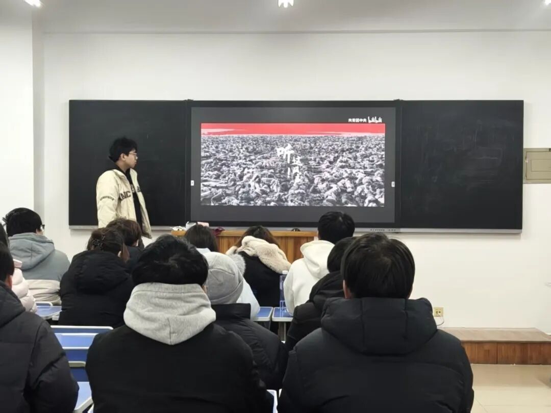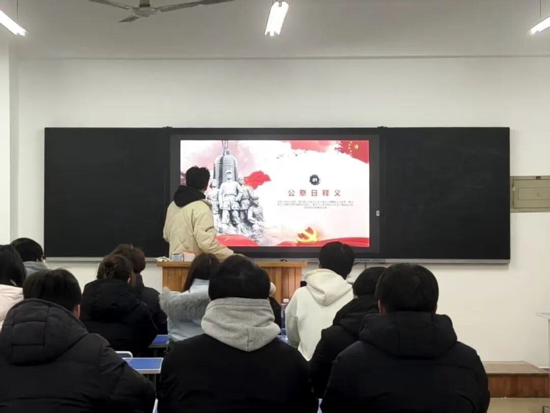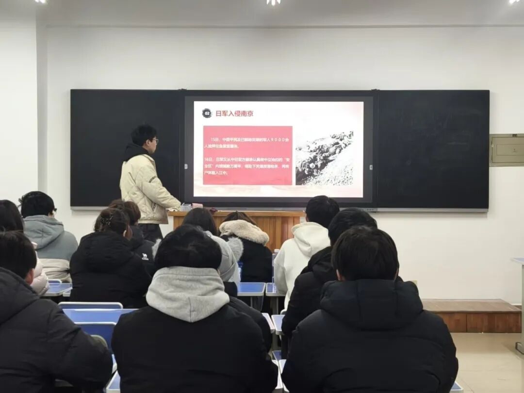 人工智能学院党支部将“公祭日专题宣讲”作为主题活动的核心环节:宣讲人围绕两大核心内容展开讲解——先是立足国家公祭日的设立背景,从国际社会的战争纪念传统,讲到我国以立法形式确定12月13日为南京大屠杀死难者国家公祭日的深刻意义,让学生明确这一纪念日的法定性与精神价值;随后,宣讲人通过史实资料,详细还原“日军入侵南京”的暴行细节,教室内的青年们屏息聆听,对“民族伤痛”有了更具象的认知。
