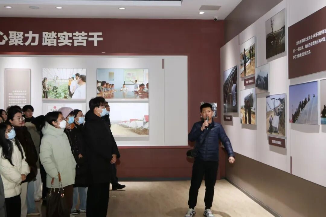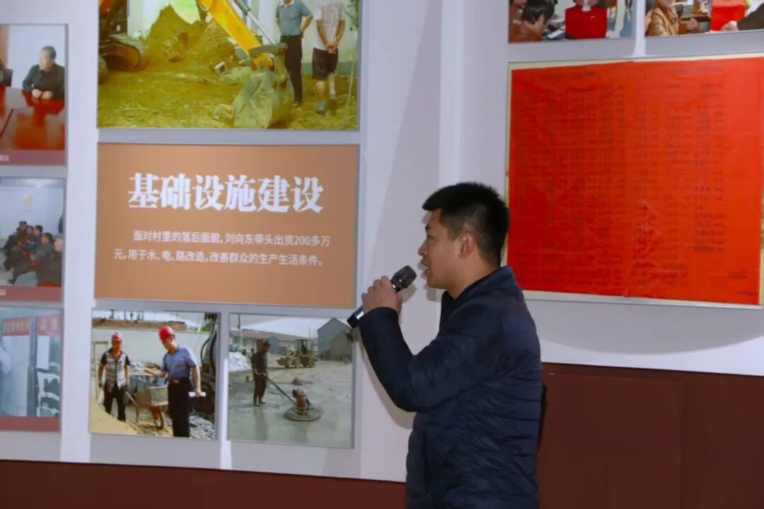 展厅内,讲解员细数“刘向东带头出资改善村基础设施”的攻坚历程,泛黄的施工照片与详实的文字记录,将基层干部的奉献精神具象化。师生们驻足凝视,从“水电路改造”的民生实事中,读懂了“把论文写在大地上”的责任,也深化了“以实干践初心”的认知。