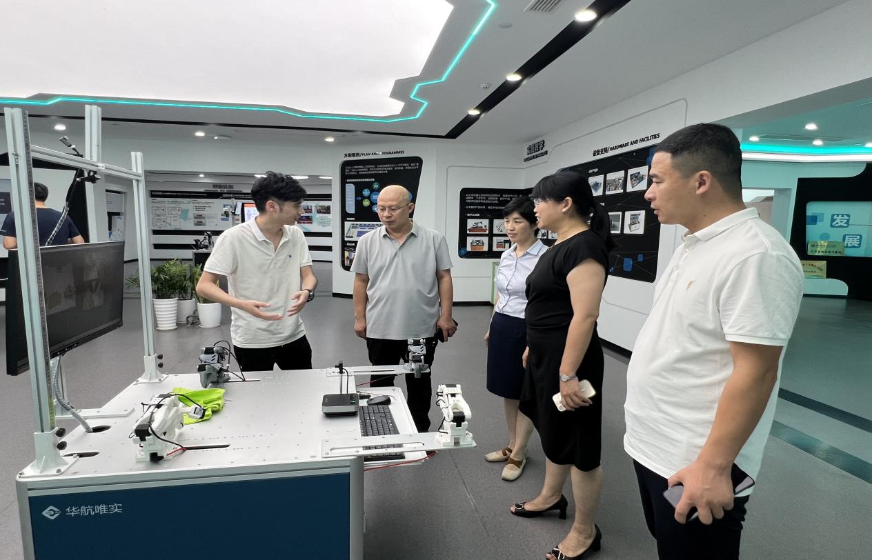 为精准对接人工智能产业发展需求,打通人才培养与企业用人的“最后一公里”,8月18日,人工智能学院组建由副院长马家兴、王翠英牵头,专业负责人张得龙、丁锡龙、蔡迪组成的5人考察团,赴北京华航唯实机器人科技股份有限公司(嘉兴)开展深度调研,以实地考察为纽带,开启校企协同育人新篇章。