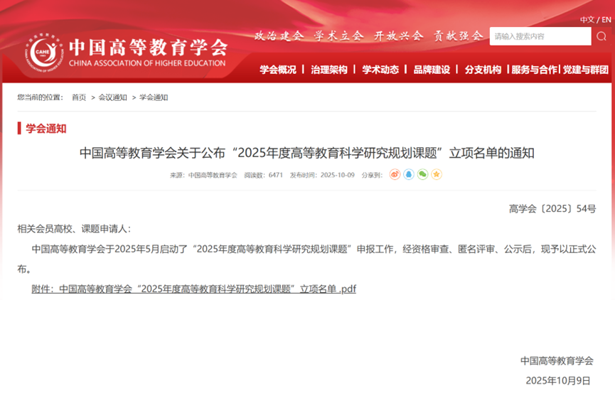 10月9日,中国高等教育学会公布“2025年度高等教育科学研究规划课题”立项名单,人工智能学院立项2项重点课题:马家兴主持的《OBE-OFE 双螺旋驱动下高校学科竞赛改革推动创新创业工程人才培养生态模型构建研究》、刘静主持的《高校理科跨学科人才培养的师资协同困境与教学共同体建设路径研究》,充分彰显了人工智能学院在高等教育教学研究领域的扎实基础与创新实力。