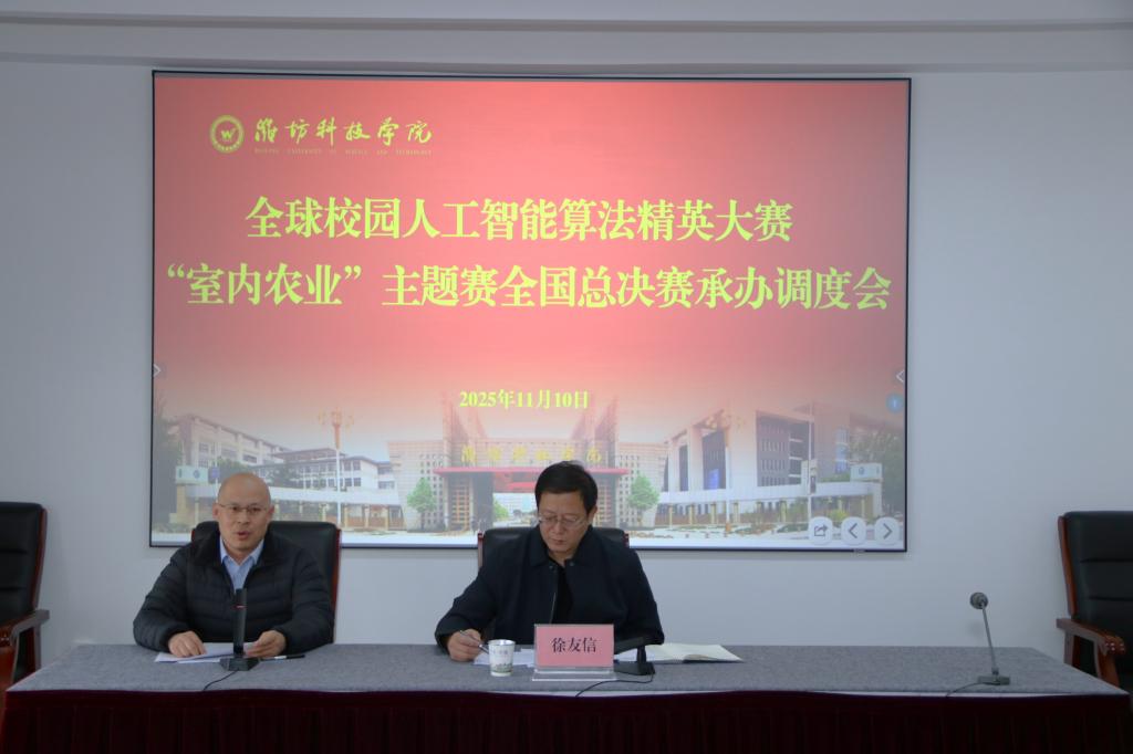 2025年11月10日下午,徐友信副校长主持召开2025年全球校园人工智能算法精英大赛“室内农业”主题赛全国总决赛承办调度会,相关部门负责人参会。徐校长统筹安排赛事工作,要求:做好服务保障,确保赛事安全有序;推进筹备协调,强化宣传打响赛事品牌;以赛事为契机,助力应用型本科建设与人才培养。
