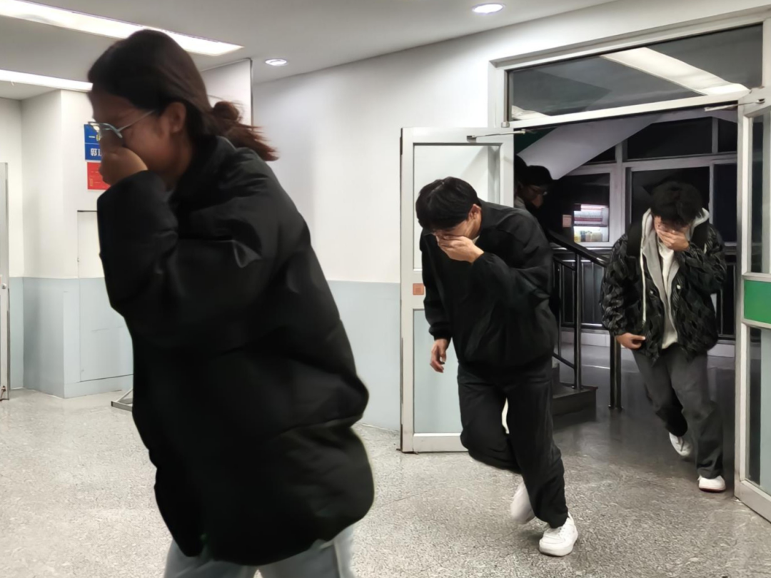 消防演练环节中,学院精心布置模拟火场场景。随着警报声响起,辅导员迅速组织学生按照预定疏散路线,弯腰低姿、捂住口鼻,快速有序地撤离至指定安全区域,全程紧张有序、有条不紊。到达安全区后,工作人员现场演示灭火器的正确使用方法,手把手指导学生进行实操练习,让大家在亲身体验中掌握灭火技能。
